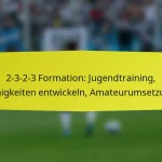 Die 2-3-2-3-Formation ist ein taktisches System im Fußball, das aus zwei Verteidigern, drei Mittelfeldspielern, zwei Stürmern und einem Torwart besteht. Diese Formation betont sowohl defensive Stabilität als auch offensive Flexibilität, wodurch Teams sich an verschiedene Spielsituationen anpassen können. Während sie Vorteile wie erhöhte Torgelegenheiten und starke Kontrolle im Mittelfeld bietet, bringt sie auch Herausforderungen mit sich, darunter Verwundbarkeiten gegenüber Kontern und potenzielle Probleme mit der Spielerkoordination.